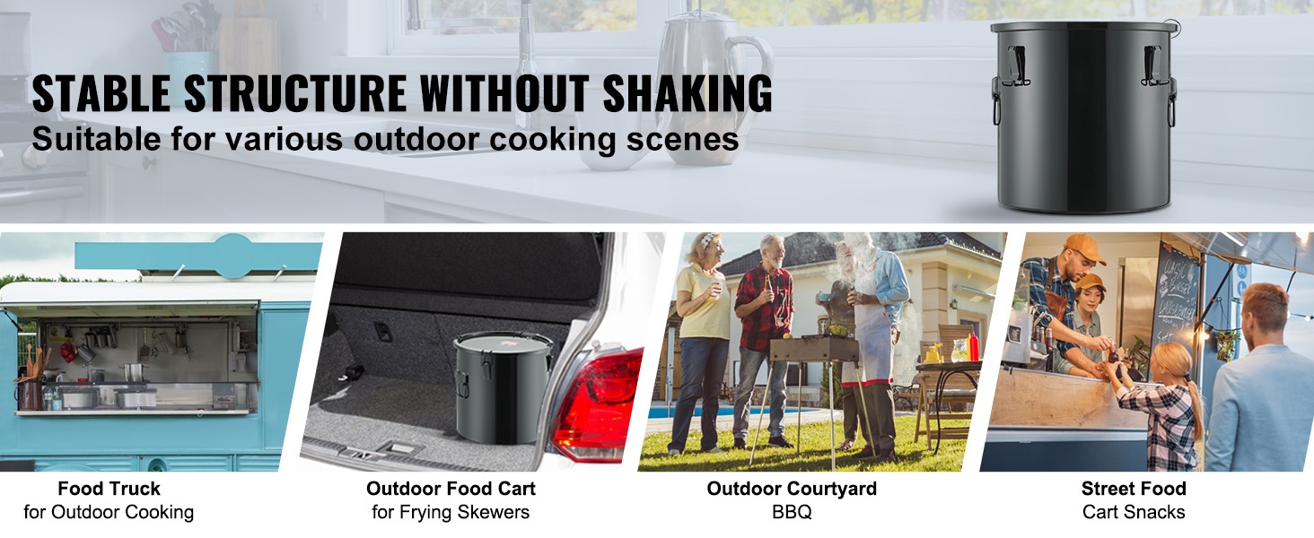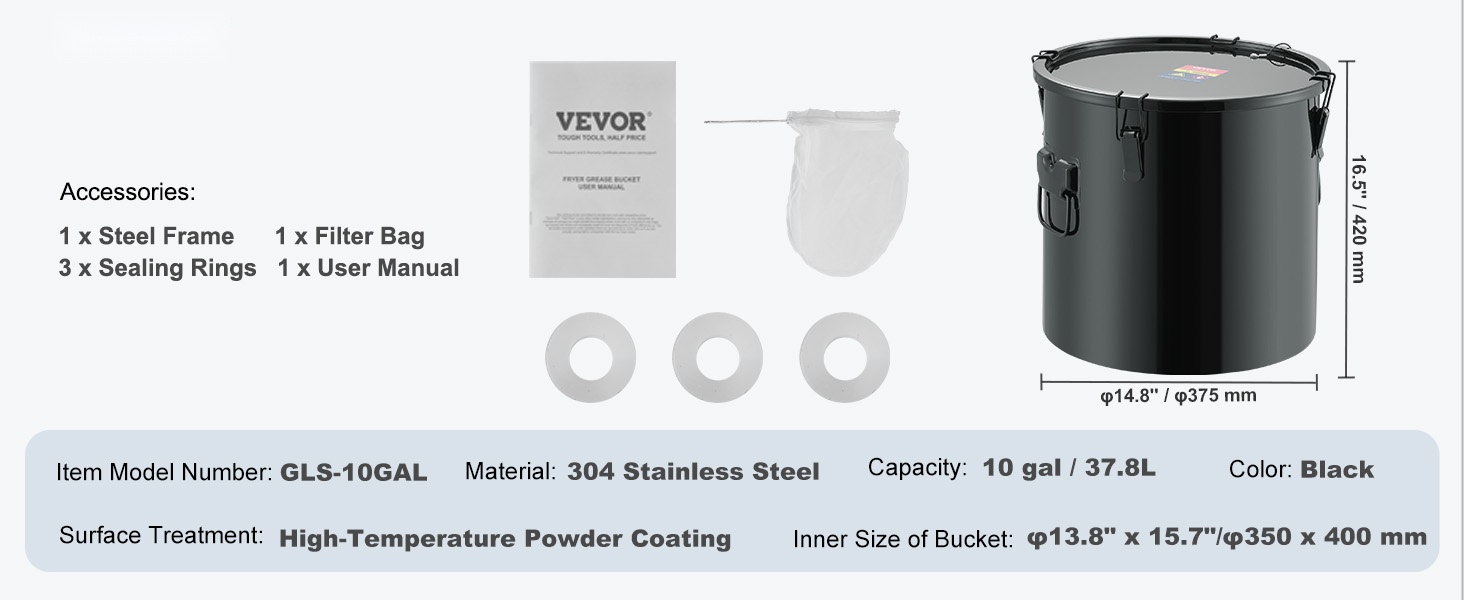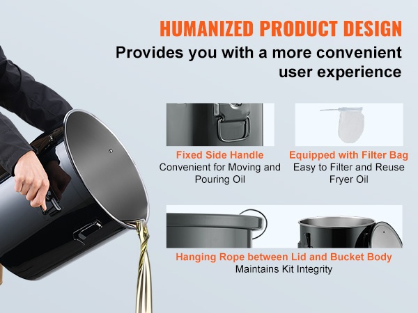Tämä suuren tilavuuden rasva-astia helpottaa kuuman paistoöljyn suodattamista, säilytystä ja siirtämistä. Se soveltuu hyvin ammattikeittiöihin, ravintoloihin, ruokarekkoihin ja muuhun vaativaan käyttöön.