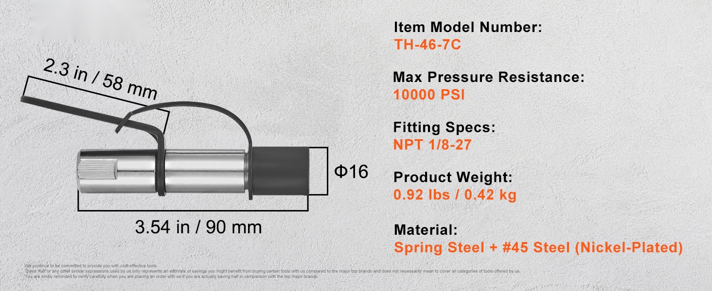 Rasvaprässin suutinpää on valmistettu jousiteräksestä ja #45-teräksestä (nikkelipinnoitettu), mikä takaa pitkän käyttöiän ja hyvän paineenkeston jopa 10000 PSI asti. Vahvistettu lukitus ja jousirakenne auttavat estämään sekä vuodon että lipsumisen käytön aikana.