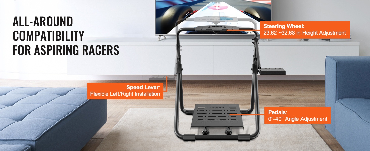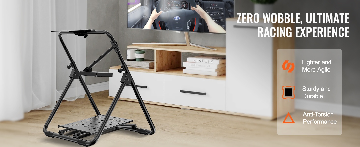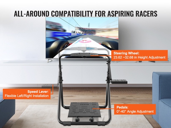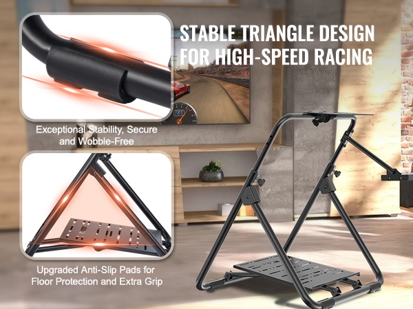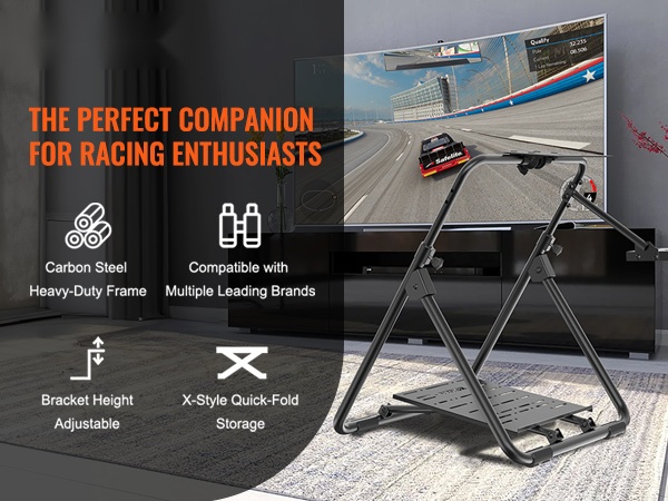 Taittuva ja korkeussäädettävä ratin teline tuo ajopelikokemuksen myös pienempiin tiloihin. Tukeva rakenne pitää ratin ja polkimet vakaasti paikallaan, ja telineen voi säätää omaan ajoasentoon sopivaksi sekä helposti taittaa ja varastoida käytön jälkeen.
