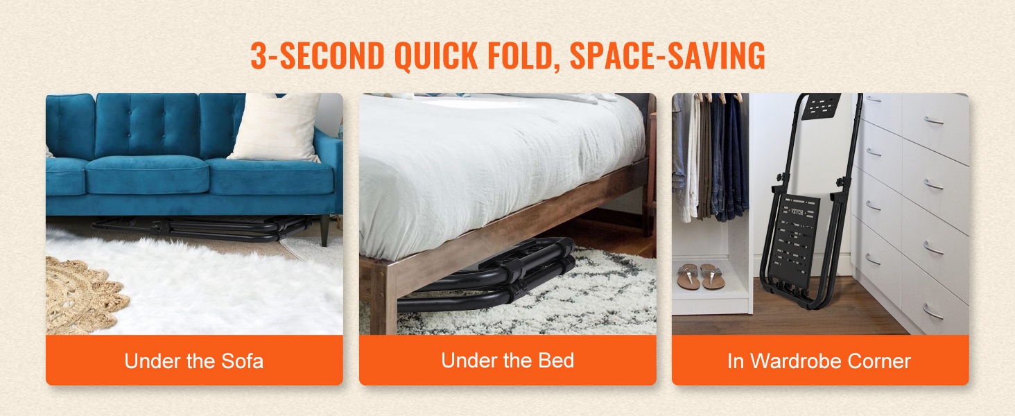 Kolmiomainen mekaaninen tukirakenne pitää telineen tukevana ilman häiritsevää heilumista ajon aikana. Päivitetyt liukuestetyynyt parantavat pitoa ja estävät telineen liukumisen sekä suojaavat lattiaa naarmuilta.