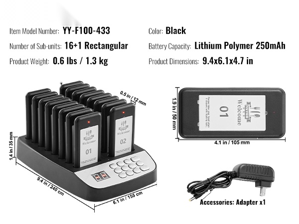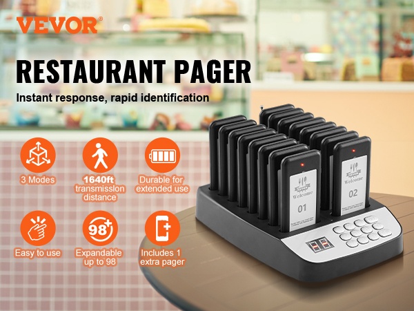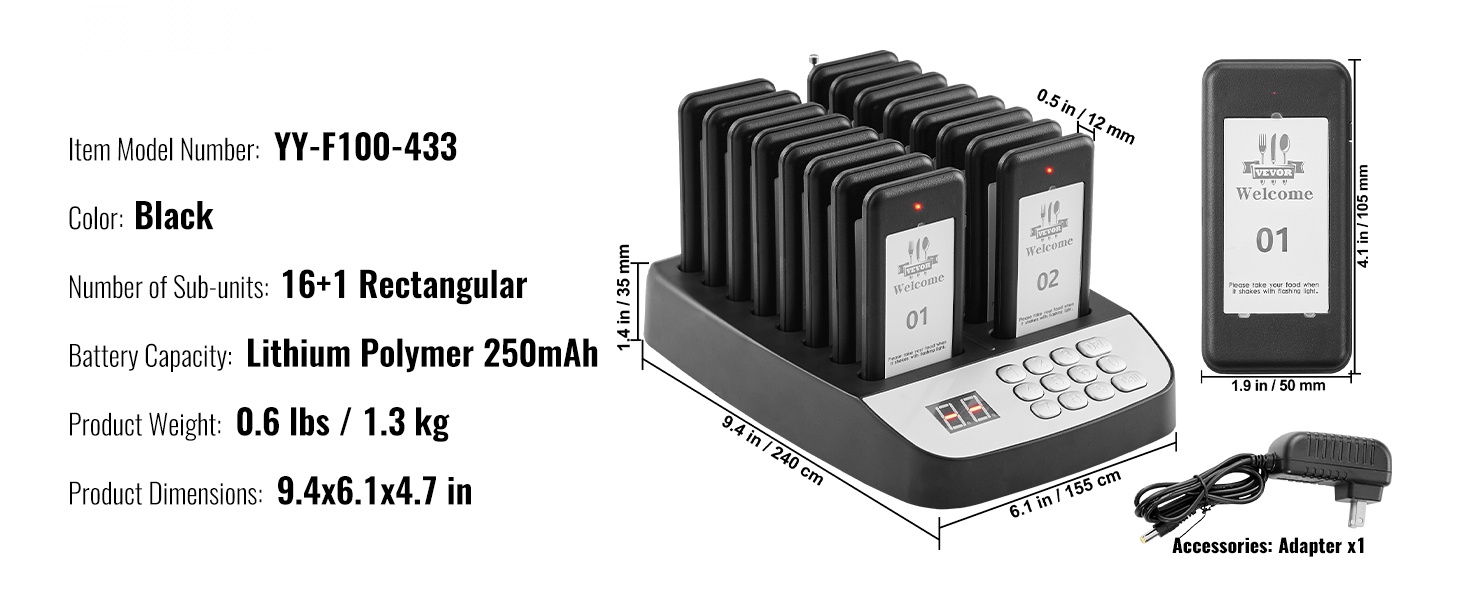 Langaton jonotusjärjestelmä ravintoloihin ja ruokarekkoihin 500 m kantama 16 hakulaitetta