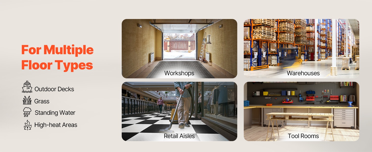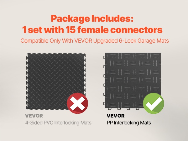 - Yhteensopiva 6-lukkoisten, nelisivuisten PVC-autotallilaattojen kanssa