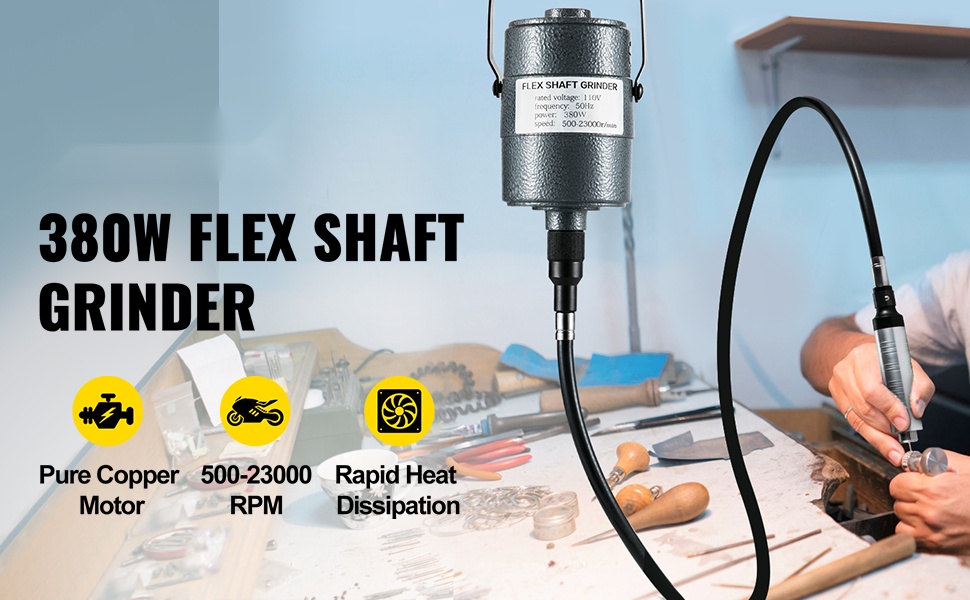 Tämä 230W ripustettava joustoporahiomakone soveltuu tarkkuustöihin, kuten hiontaan, hiontapaperilla viimeistelyyn, kiillotukseen, purseiden poistoon ja puhdistukseen. Tehokas kuparimoottori, tarkka kolmileuallinen istukka ja portaattomasti säädettävä jalkapoljin helpottavat työskentelyä erilaisilla materiaaleilla, kuten metallilla, puulla, kivellä ja korumetalleilla.