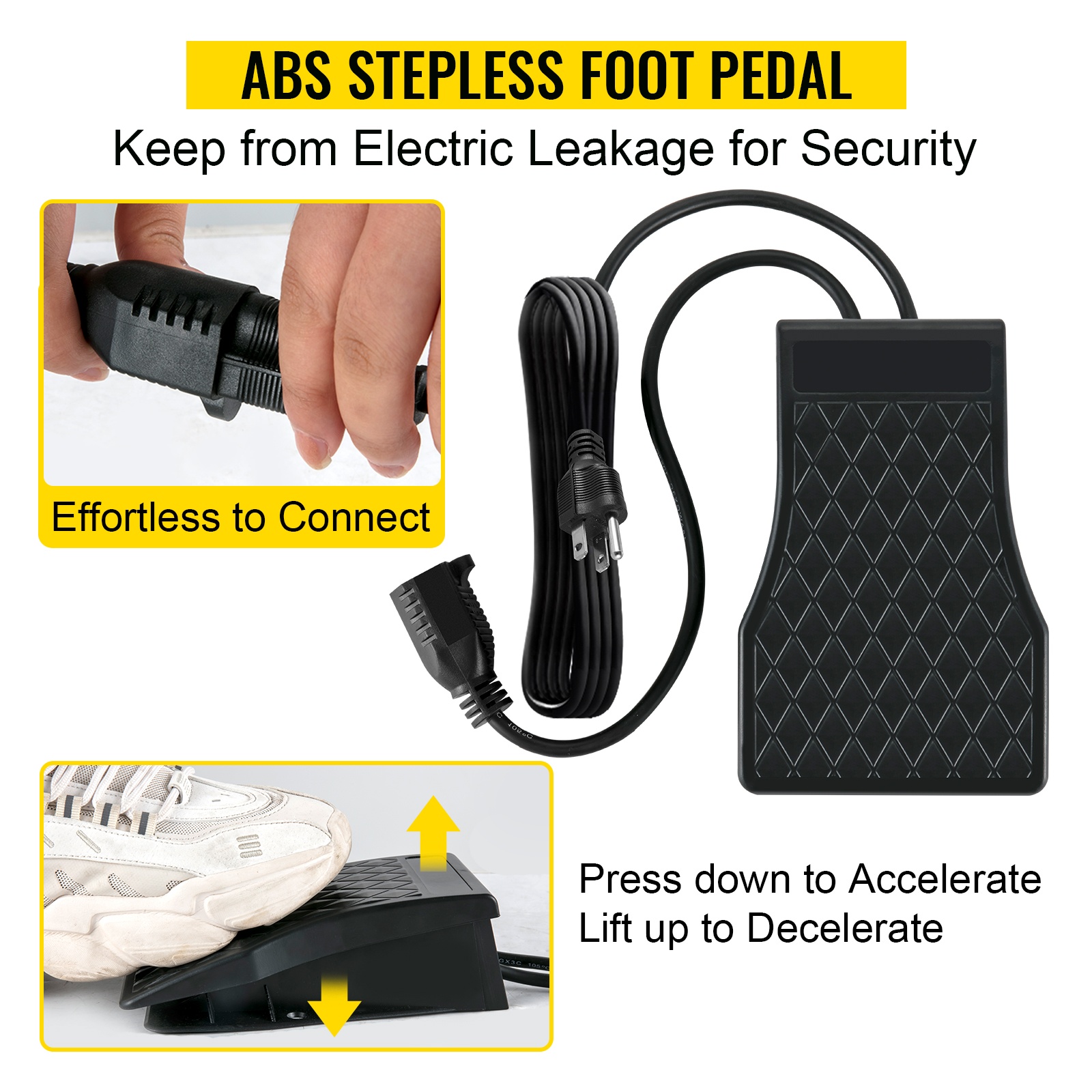 Jalkapoljin on valmistettu kestävästä ABS-muovista ja siinä on kiinteä elektroniikka. Polkimessa oleva säätöruuvi mahdollistaa peruskierrosnopeuden ja säätöalueen hienosäädön, jolloin nopeus muuttuu tasaisesti ja työskentely on hallittua.