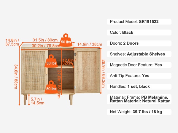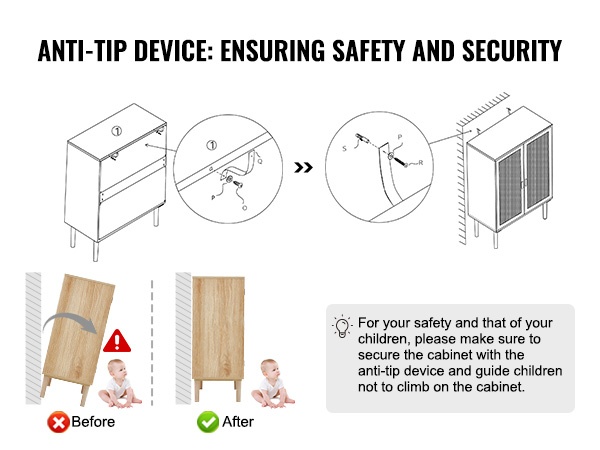 Integroitu jalkarakenne lisää kaapin vakautta. Mukana toimitetaan kallistumissuoja, joka tulee asentaa ennen käyttöönottoa, jotta kaappi pysyy turvallisesti paikoillaan myös kuormitettuna. Kaapin enimmäiskuormitus on 133 lbs / 60.3 kg.
