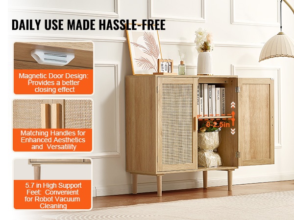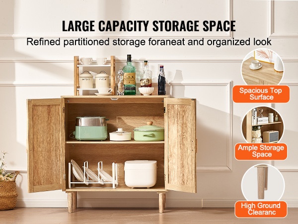Kaapissa on yhteensä 6 magneettisulkuista ovea ja 3 laatikkoa, jotka tarjoavat useita säilytystasoja. Niihin mahtuvat esimerkiksi astiat, lasit, laukut, hanskat, kirjat ja muut arkiset tavarat siististi järjestyksessä.