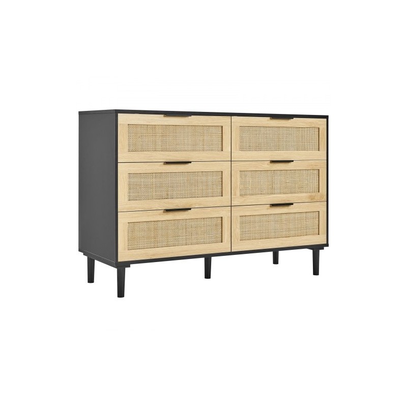 Tässä 6-laatikkoinen rottinkilipasto yhdistää luonnollisen rottingin ja tukevan puurunkoisen rakenteen. Se tarjoaa runsaasti säilytystilaa vaatteille, tekstiileille ja arjen tavaroille ja sopii hyvin makuuhuoneeseen, olohuoneeseen tai eteiseen.