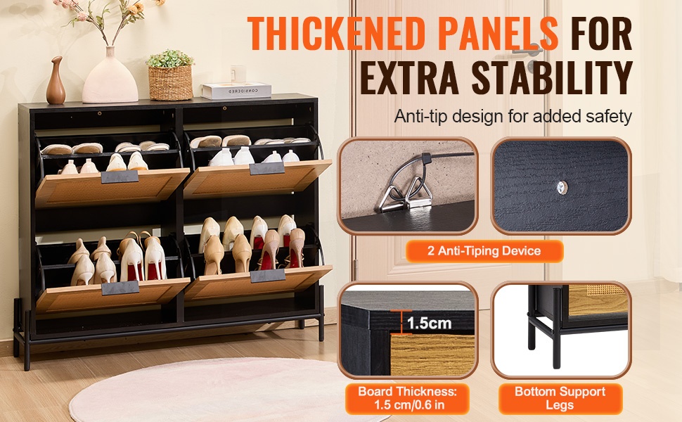 Harkittu, tilaa säästävä rakenne helpottaa lempikenkien esille ottamista ja piilottamista käytön jälkeen. Näin eteinen, käytävä tai vaatehuone pysyy siistinä ja selkeänä.