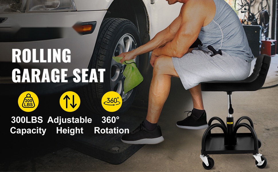Kestävä rullaava verstaustuoli helpottaa työskentelyä autotallissa, korjaamolla ja työpajassa. 300 lbs/135 kg kantavuus ja tilava 16" istuin tarjoavat tukevan ja mukavan työasennon. Pneumaattinen korkeudensäätö 15.7 in/40 cm – 20.5 in/52 cm välillä auttaa löytämään sopivan työskentelykorkeuden eri tehtäviin. Suuri teräksinen säilytystaso pitää työkalut ja tarvikkeet käden ulottuvilla, ja neljä suurta 3 in/7.6 cm pyörää takaavat sujuvan liikkumisen. Kahdella pyörällä olevat jarrut pitävät tuolin tukevasti paikoillaan työn aikana.