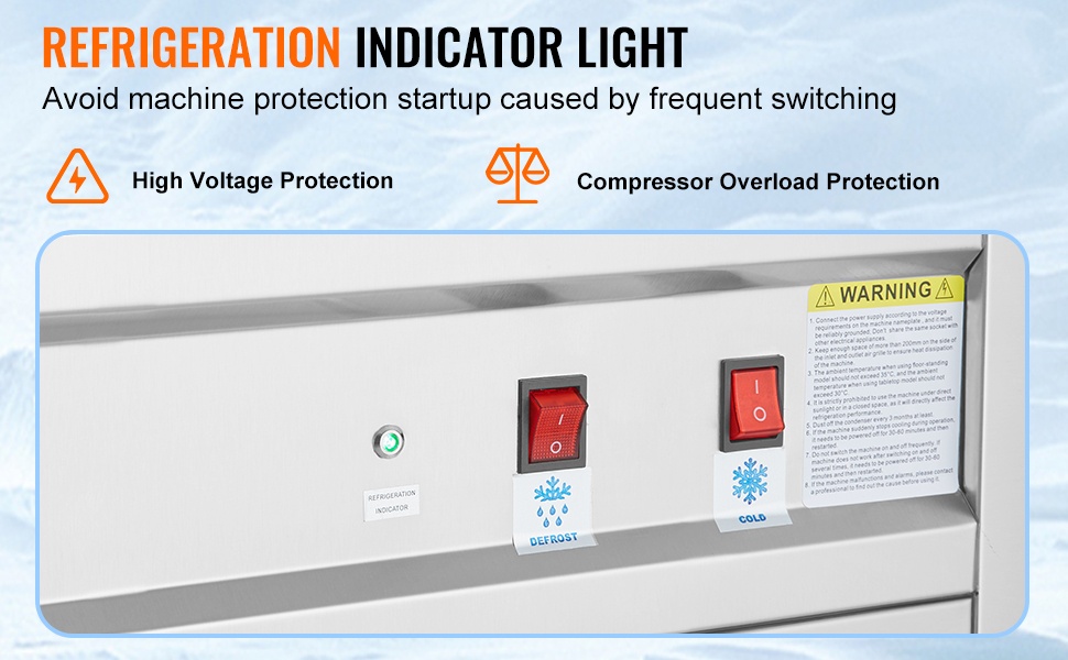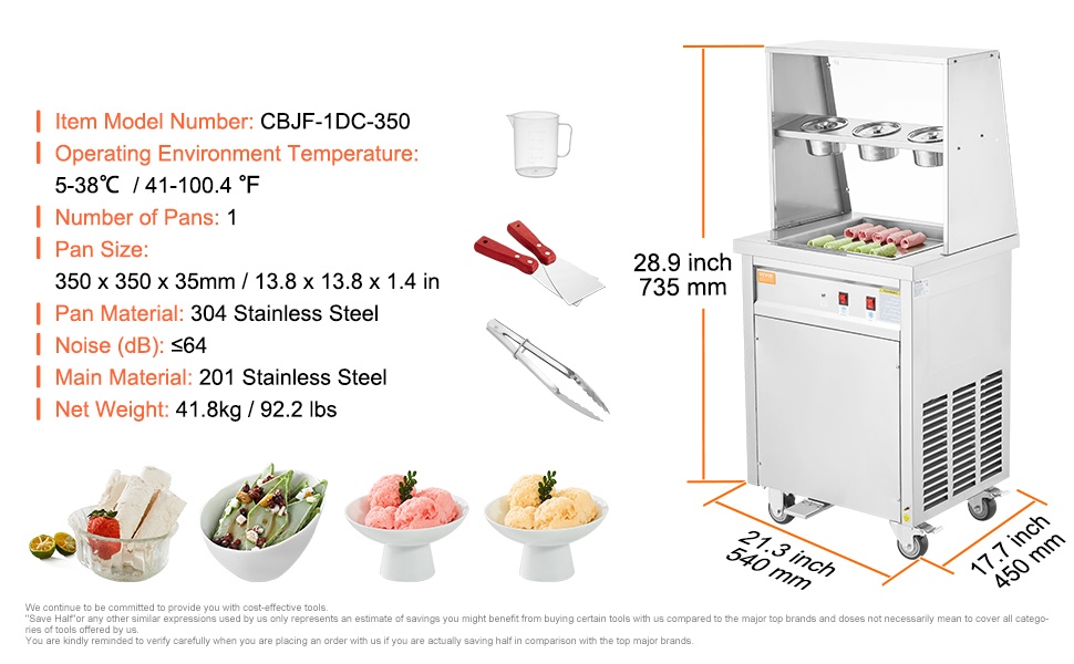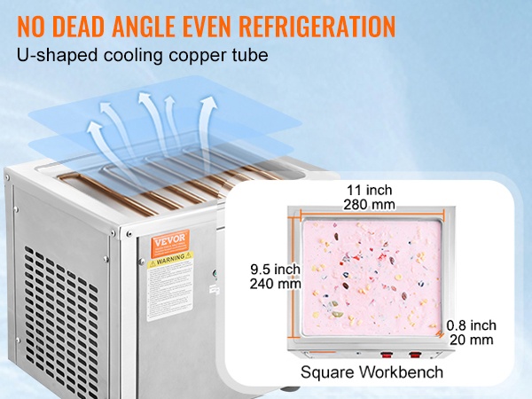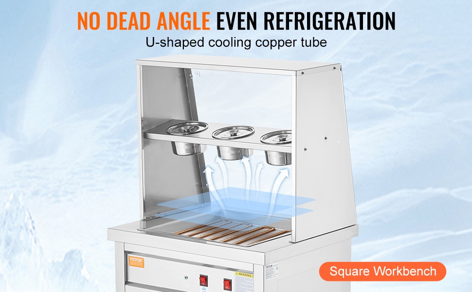 Laite käyttää U-muotoista kuparista kylmäputkistoa, joka jakaa kylmän tasaisesti ilman kuolleita kulmia ja parantaa jäähdytystehoa. Suuri työpinta antaa hyvin tilaa sekoittamiseen ja muotoiluun sekä vähentää roiskeita ja ainesosien valumista reunoille.