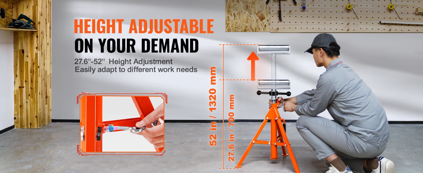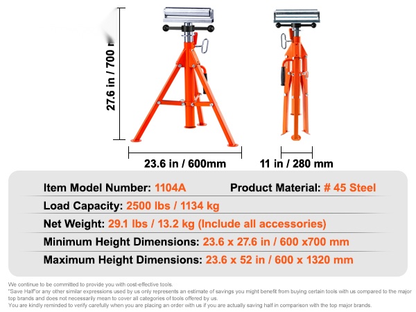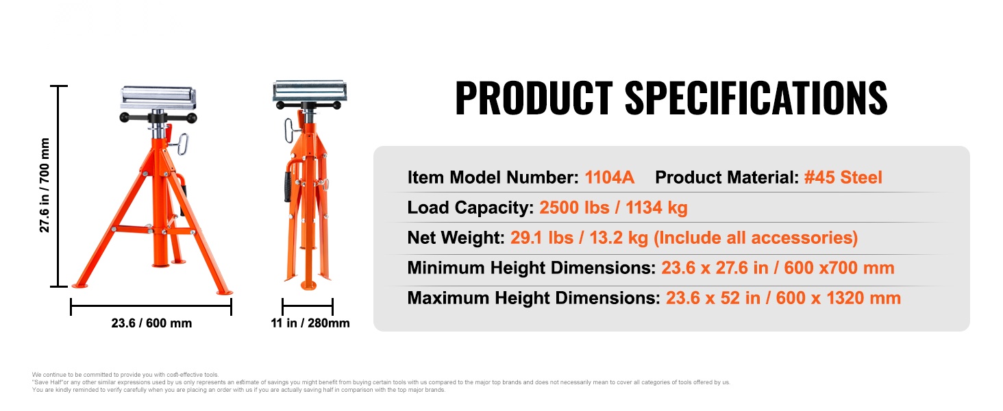 Tämä raskaan käytön rullateline tarjoaa tukevan tuen pitkille ja painaville kappaleille, kuten teräspalkkeille, putkille ja puulevyille. Kantavuus on jopa 2500 lbs / 1134 kg, joten teline sopii vaativiin sahaus-, höyläys- ja hiontatöihin.
