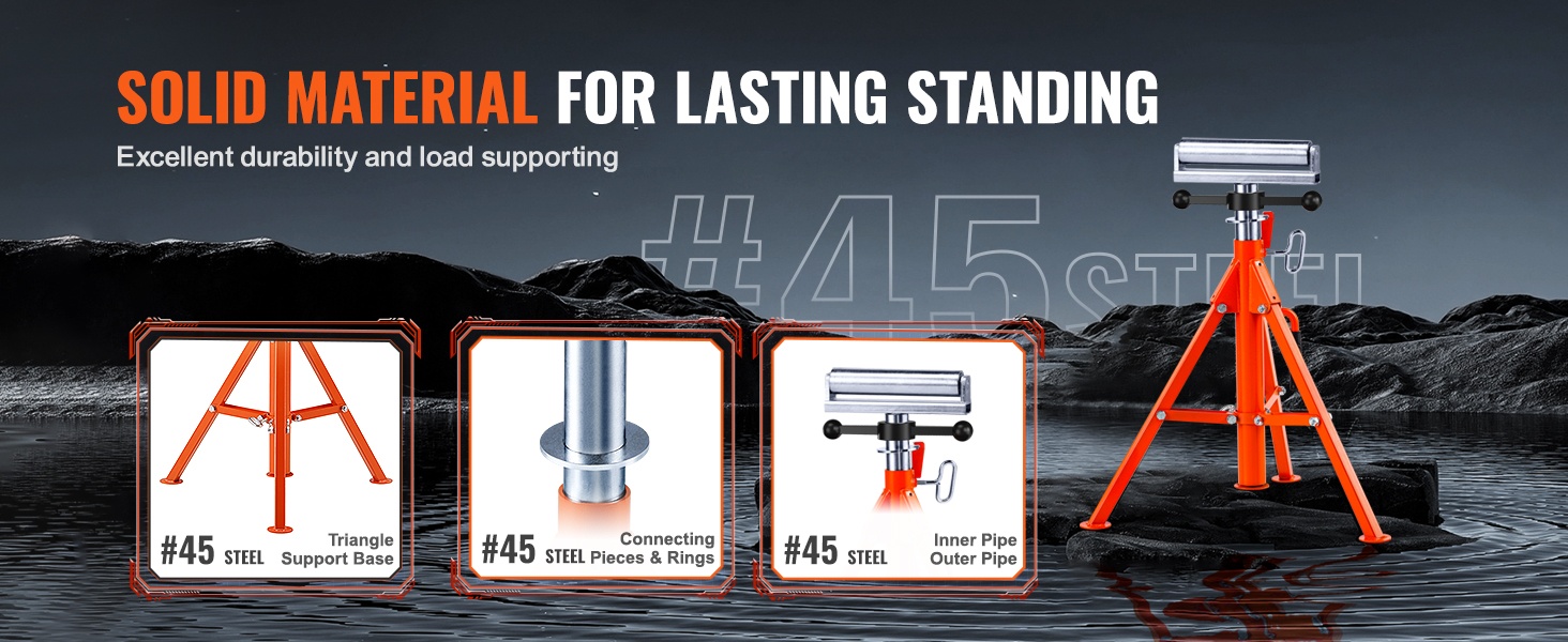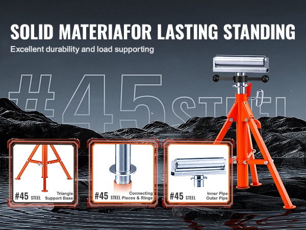 Rullateline 45-teräksestä 1134 kg kantavuus 700–1320 mm korkeussäädettävä putkille ja puulevyille