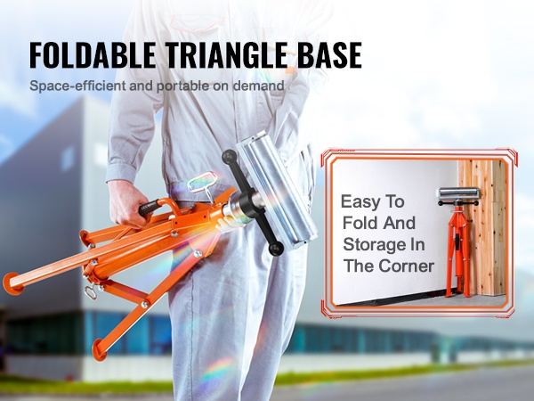 Kolmionmuotoinen jalusta on irrotettava ja taitettava, joten teline on helppo varastoida, kun sitä ei käytetä. Kompakti koko säästää tilaa työpajassa tai varastossa.