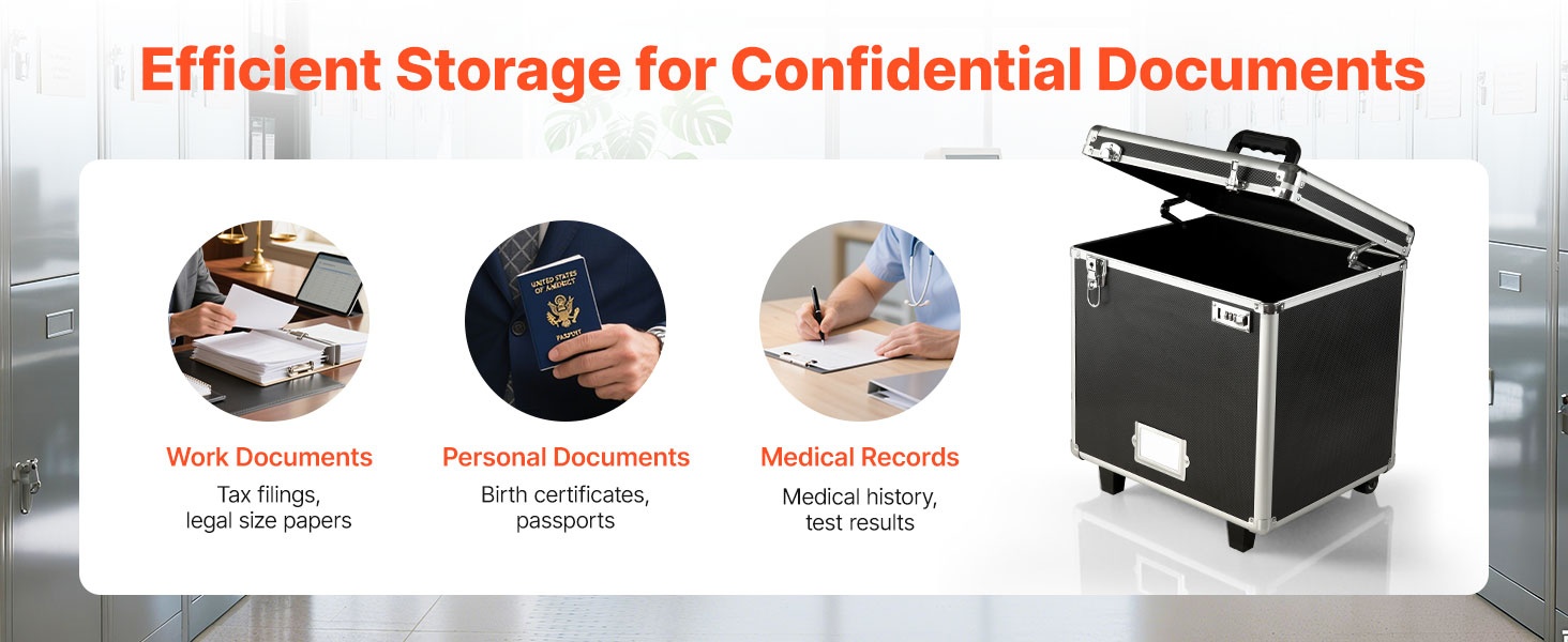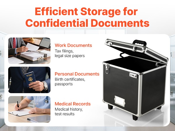 Rullattava asiakirjalaatikko säilyttää siististi veroasiakirjat, passit, potilastiedot ja muut tärkeät paperit. Se suojaa yksityisiä asiakirjoja ja auttaa pitämään arjen järjestyksessä.