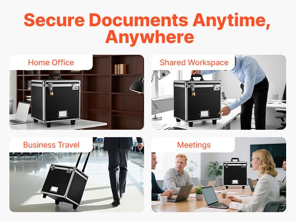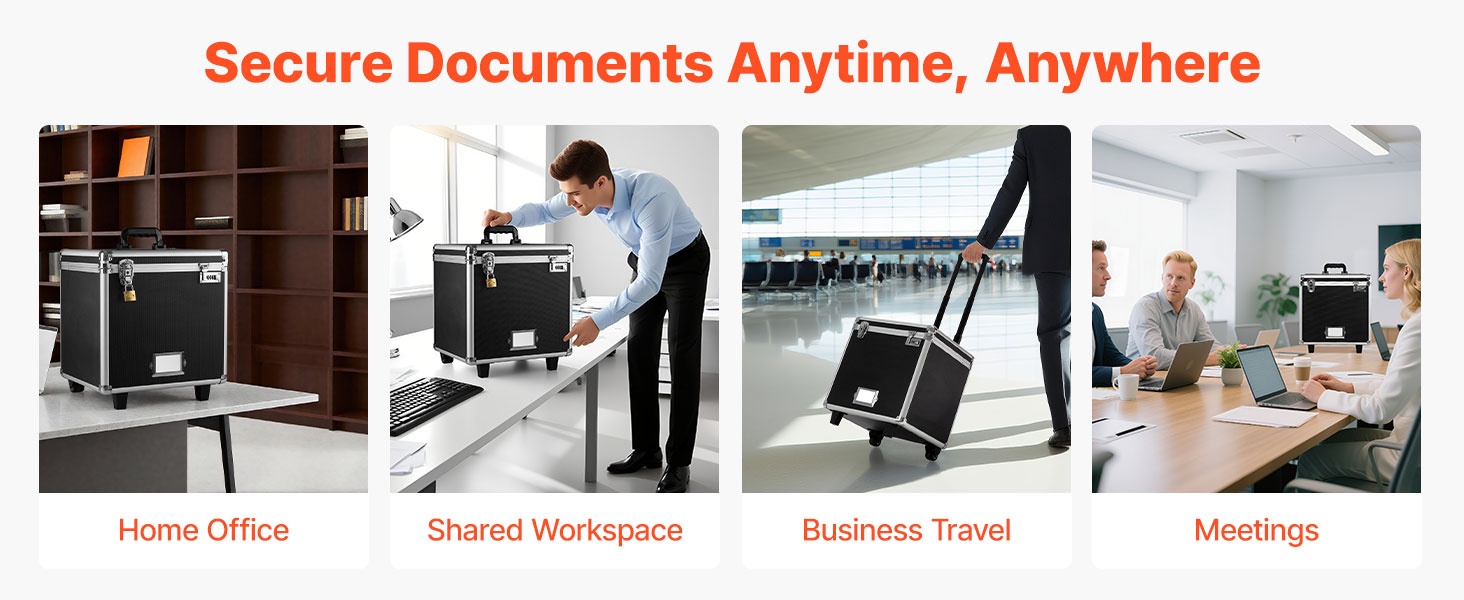 Kotona, toimistossa, lentokentällä tai kokouksissa – tämä liikuteltava salkkutyyppinen laatikko auttaa pitämään asiakirjat turvassa liikkeellä ollessasi. Se sopeutuu erilaisiin ympäristöihin ja tekee työstä ja matkustamisesta sujuvampaa.