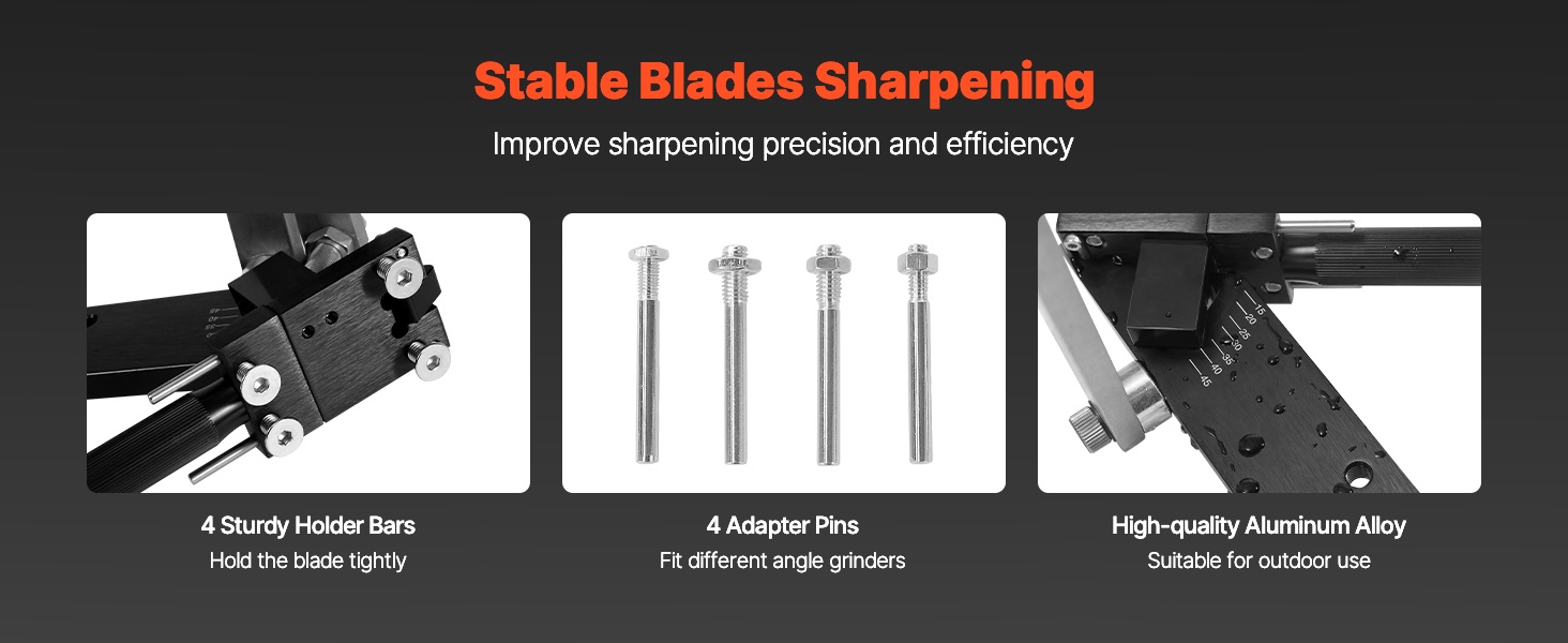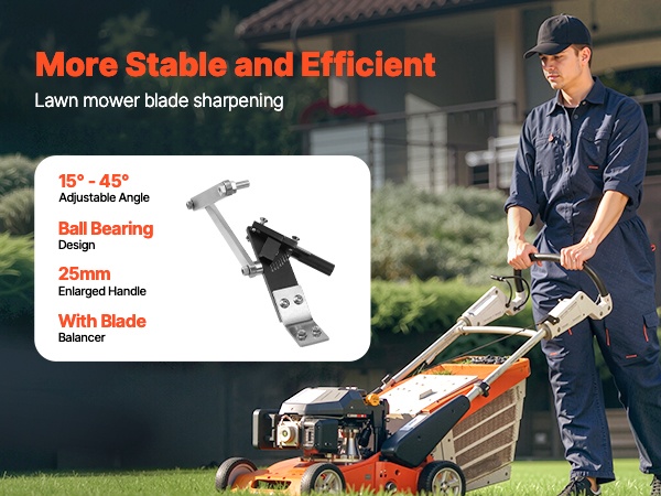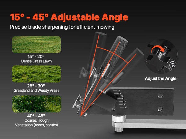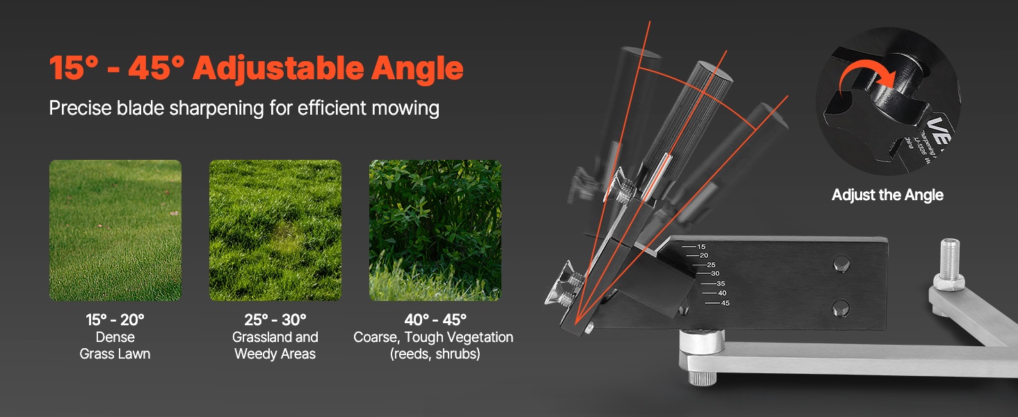 Ruohonleikkurin terän teroitin alumiiniseosrunko kuulalaakeri säädettävä 15–45 asteen kulma 25 mm kahva