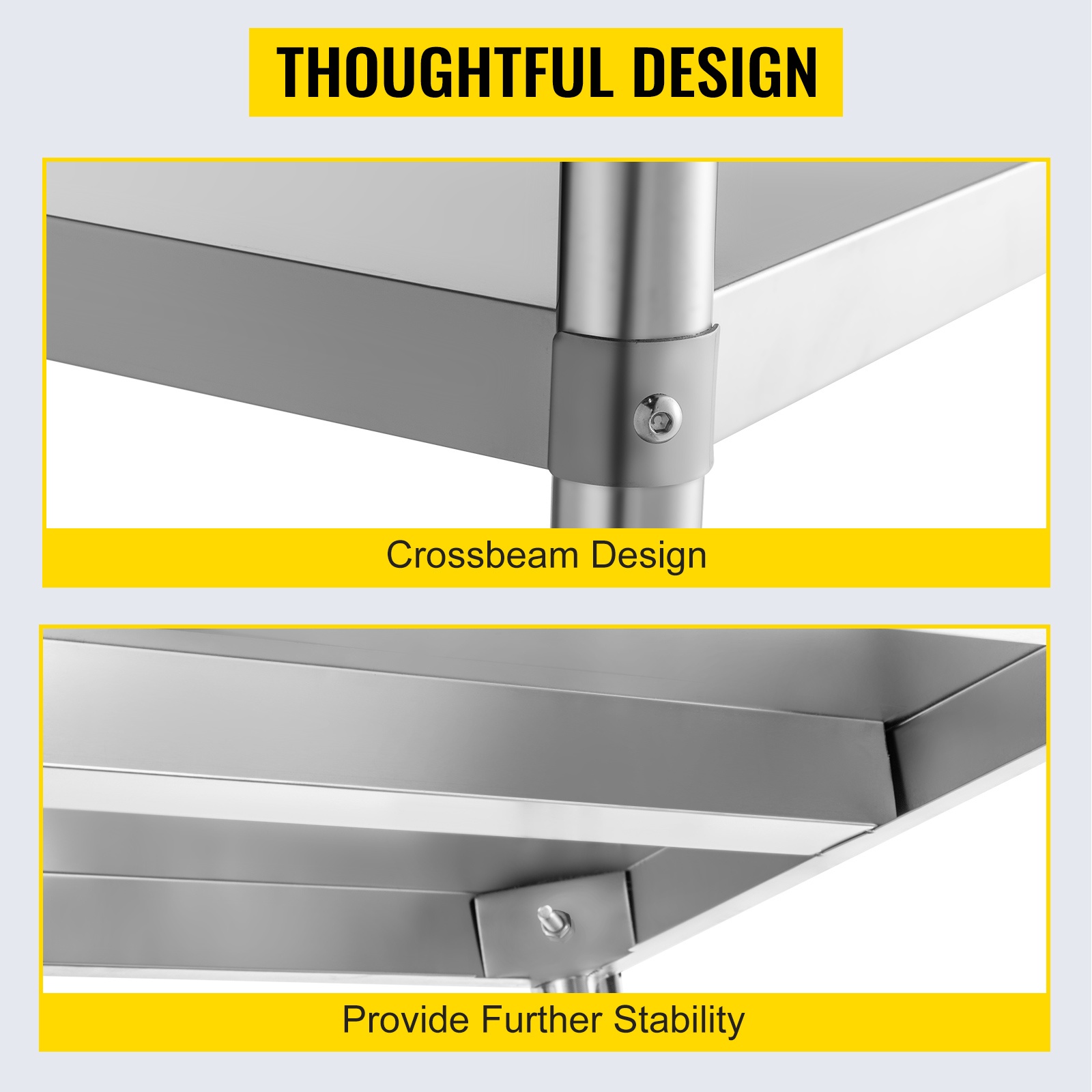 Hylly on valmistettu ruostumattomasta teräksestä, mikä tekee siitä kestävän ja helppohoitoisen. Pinta on helppo pyyhkiä puhtaaksi, eikä hylly vaadi erityistä huoltoa.