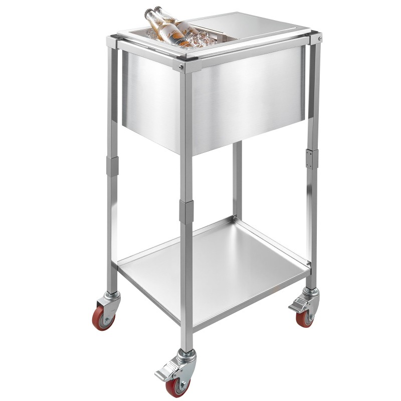 Ruostumaton teräksinen kylmävaunu 28 l liukukannella alahyllyllä pyörillä ulkokäyttöön