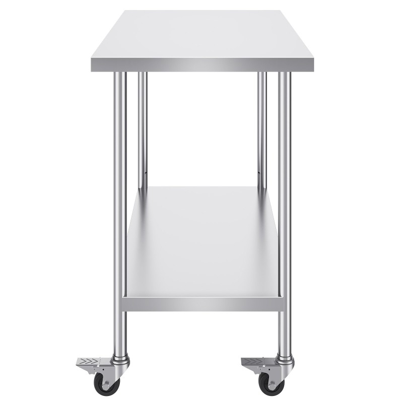 Ruostumattomasta teräksestä valmistettu työtaso koko 610x1219x955 mm hyllyillä pyörillä