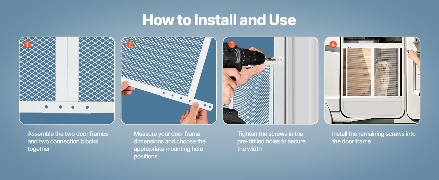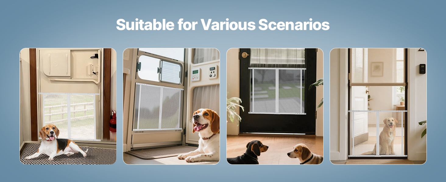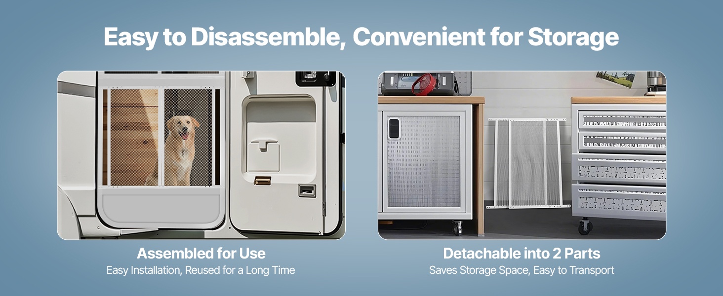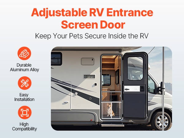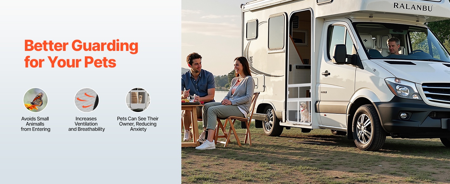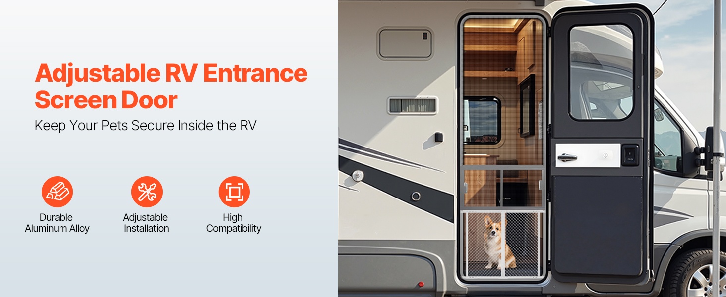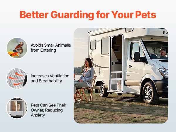Tämä säädettävä hyttysovea suojaava ritilä auttaa pitämään lemmikkisi turvallisesti matkailuauton sisällä, samalla kun oviverkko päästää raittiin ilman sisään. Rakenne estää lemmikkejä nojaamasta tai raapimasta suojaverkkoa rikki ja auttaa pitämään myös pienet eläimet matkailuauton ulkopuolella.