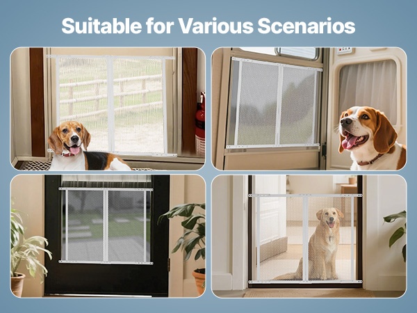 Hengittävä kennomainen kuviointi takaa hyvän ilmanvaihdon, ja lemmikit näkevät omistajansa ritilän läpi, mikä voi vähentää levottomuutta. Suoja sopii moniin eri oviaukkoihin, ja sen leveyttä voi säätää helposti oviaukon mittojen mukaan.