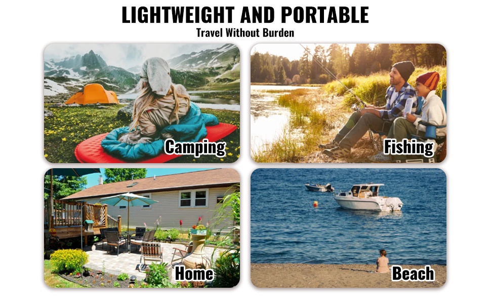 Tuolin paino on vain 5.9 kg / 13 lbs, joten sitä on helppo kantaa leirintäretkillä, kalastusreissuilla tai rannalle. Taittuva rakenne ja säilytyslaukku helpottavat kuljettamista ja varastointia, ilman että varustemäärä tuntuu liialliselta.