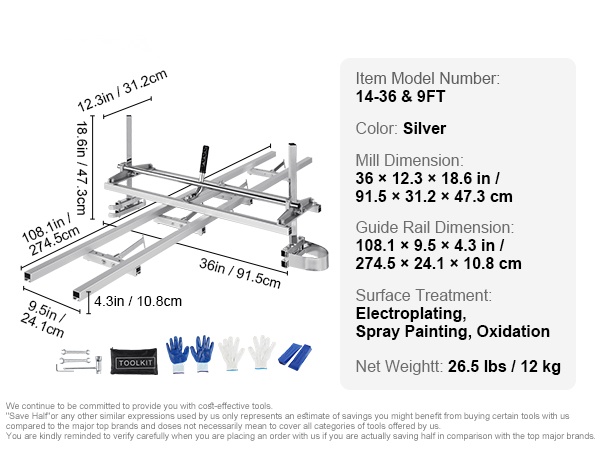 Säädettävä sahakiskosarja alumiiniseos ja hiiliteräs 3,66 m kahdella kiilalla
