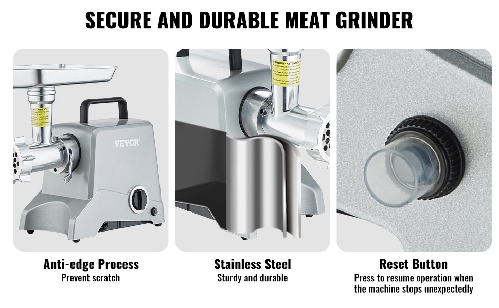 Lihamyllyssä on tukeva alumiinirunko ja tilava syöttötaso. Elintarvikekelpoisista materiaaleista valmistetut lisäosat tukevat turvallista ja hygieenistä ruoan käsittelyä. Korkea kovuus, lämmönkesto ja ruostumattomuus parantavat laitteen käyttöikää.