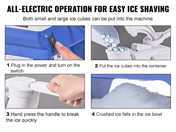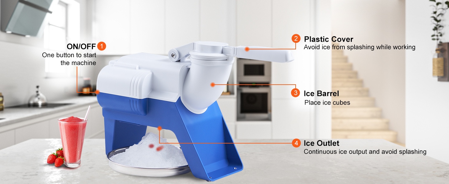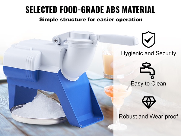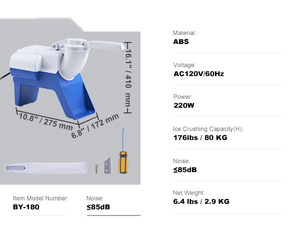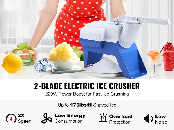 Tehokas moottori (220W) ja ruostumattomasta teräksestä valmistettu 4-teräinen murskauspää murskaavat jään nopeasti. Laite voi tuottaa jopa 176 paunaa (noin 80 KG) murskajäätä tunnissa, joten saat kerralla suuren määrän hienoa jäätä monenlaisiin käyttötarpeisiin.