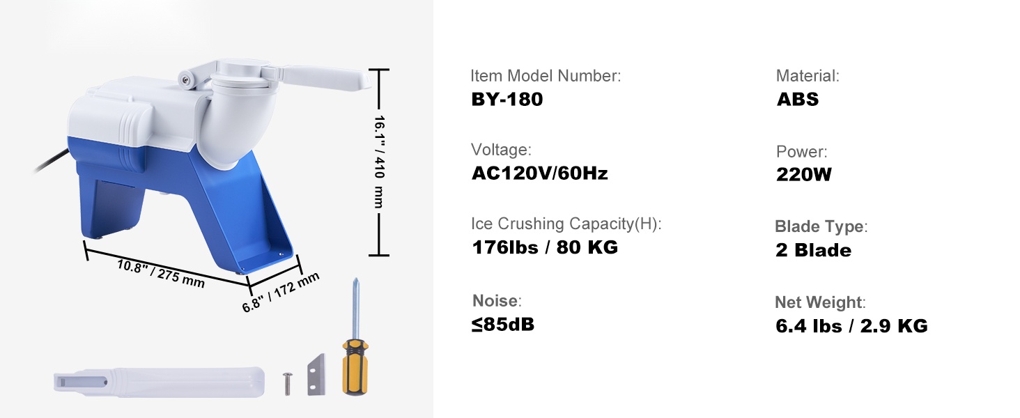 - Nopea jäänmurskaus, jopa 176 paunaa / 80 KG tunnissa