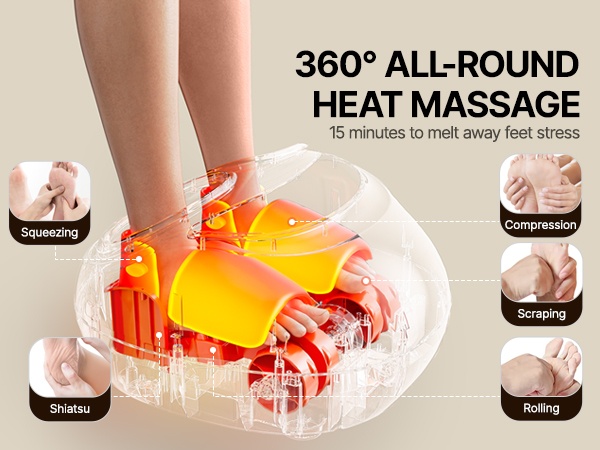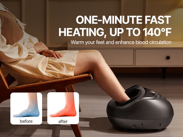 Sähköinen jalkahieroja lämpenee nopeasti enintään 140°F -lämpötilaan, mikä lämmittää jalat tehokkaasti ja helpottaa väsymystä rentouttavan hieronnan aikana. Lämmitys tukee jalkojen palautumista, parantaa verenkiertoa ja voi edistää myös unen laatua.