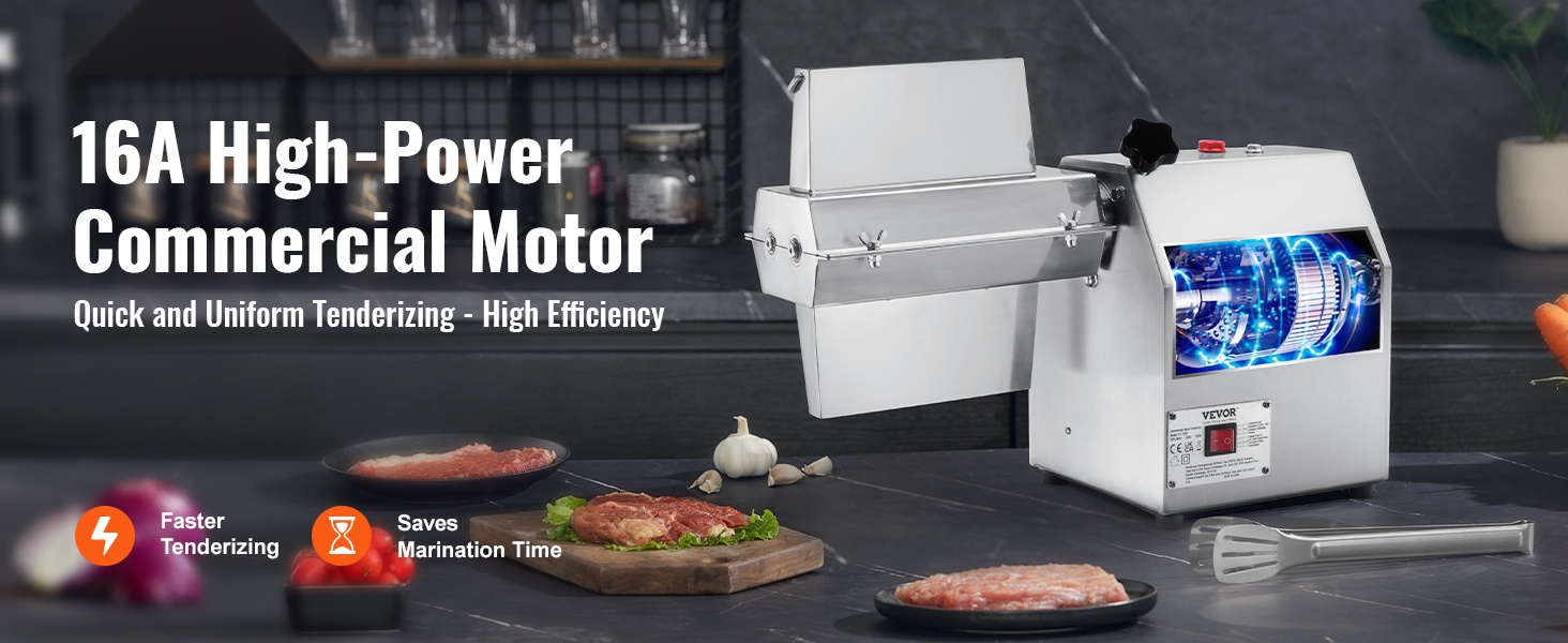 Tehokkaalla kaupallisella moottorilla varustettu sähköinen lihanuijin mureuttaa lihan nopeasti ja tasaisesti, tuotantokapasiteetin ollessa jopa 120Kg/H. Tämä vähentää käsityötä, lyhentää marinointiaikaa ja tekee kiireisestä keittiötyöstä sujuvampaa.