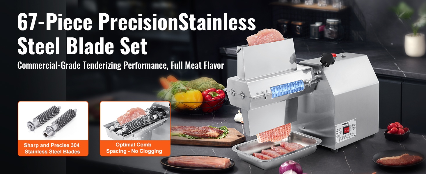Laitteessa on 54 tarkkaa ruostumattomasta teräksestä valmistettua terää, jotka tuottavat tasaisen, ammattitason mureutuksen ja auttavat lihan maustumisessa. Optimoitu terävälikuvio vähentää lihan juuttumista ja tekee työskentelystä sujuvaa.