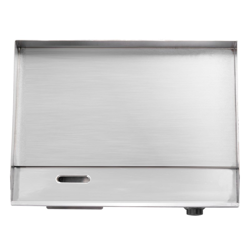 Ammattikäyttöön soveltuva sähkökäyttöinen grillilevy, jossa on tasainen paistopinta 535 x 300 mm. Ruostumattomasta teräksestä valmistettu runko ja rautainen paistolevy takaavat kestävyyden ja helpon puhdistuksen. Lämpötilaa voidaan säätää välillä 50-300°C, joten laite sopii erilaisille ruoille, kuten pihveille ja pannukakuille.