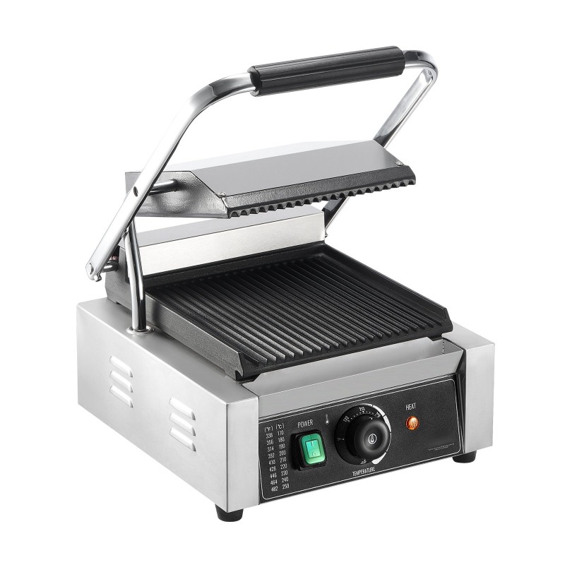 Kompakti sähköinen paninigrilli sopii erinomaisesti kahviloihin, ravintoloihin, ruokakojuihin ja kotikeittiöön. 9"x9" täysurattu emaloitu paistolevy tarjoaa riittävästi paistopintaa ilman, että laite vie paljon tilaa työtasolla. Grillillä voi valmistaa useita eri ruokia samanaikaisesti.