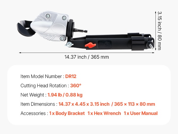 - Leikkuupään kierto: 360° joustava kulmansäätö