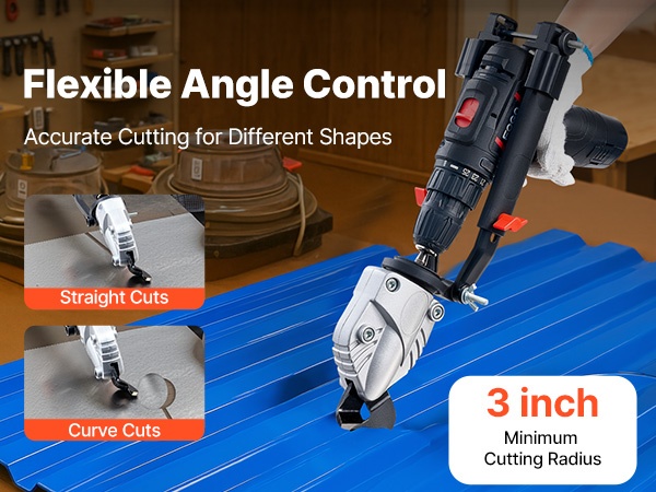 Sähköinen pelti- ja levyleikkuri 4,0 ampeerin moottorilla 360 asteen kääntyvällä leikkuupäällä