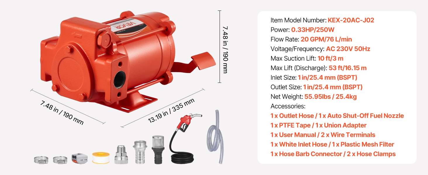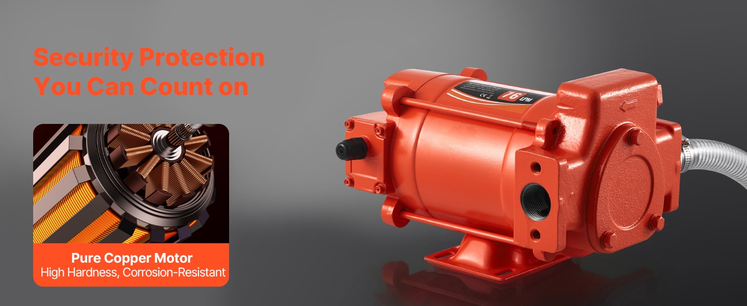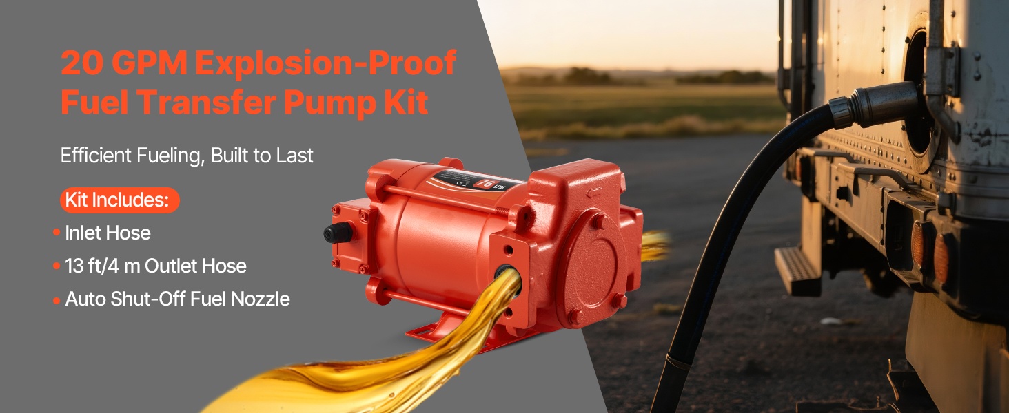 Pumppu siirtää polttoainetta enintään 20 GPM (76 L/min) virtausnopeudella. Imukorkeus on 10 ft (3 m) ja enimmäisnostokorkeus 53 ft (16.15 m), joten polttoaineen siirto onnistuu myös korkeammille pisteille. Puhdasta kuparia oleva moottori ja sisäänrakennettu ylikuumenemissuoja tukevat luotettavaa ja turvallista käyttöä dieselille, kerosiinille ja biodieselille.