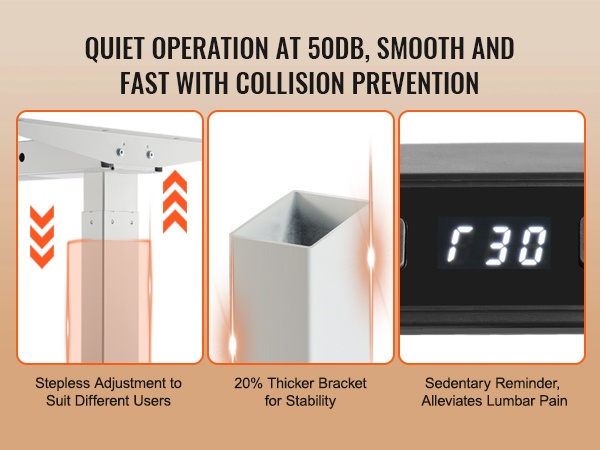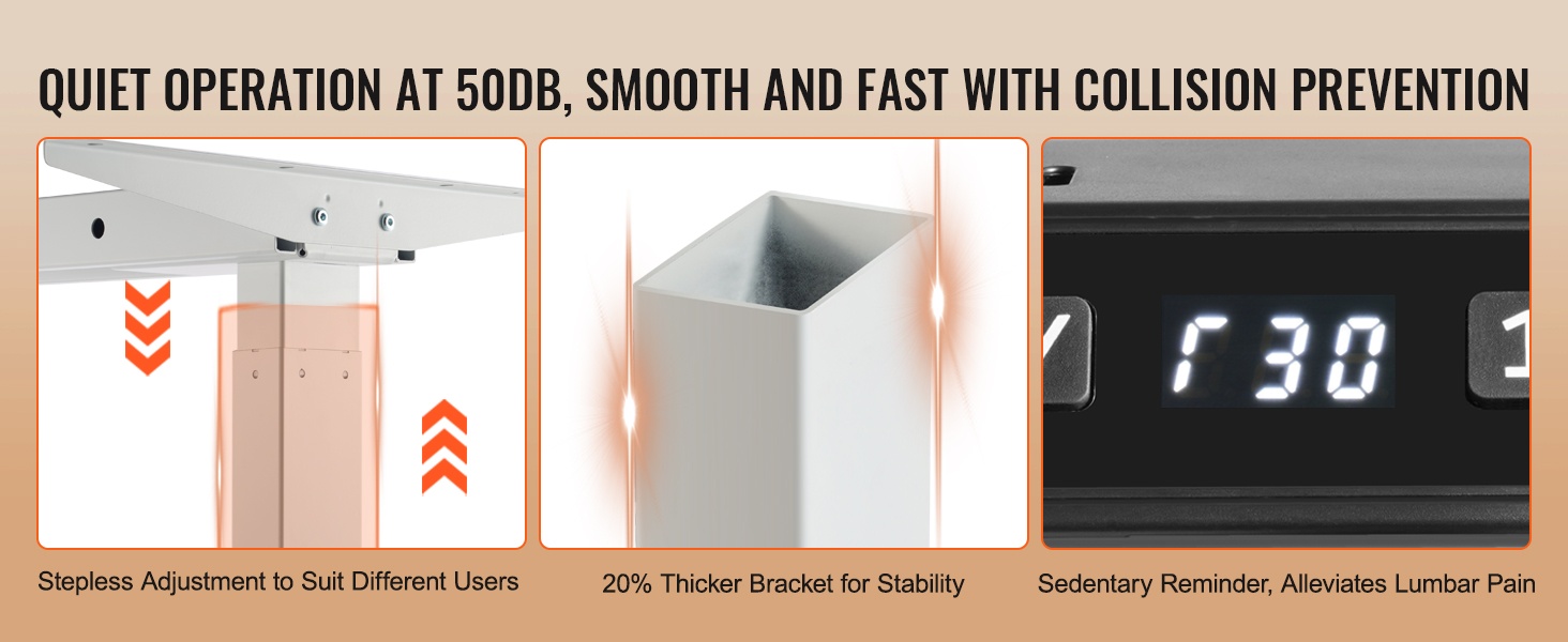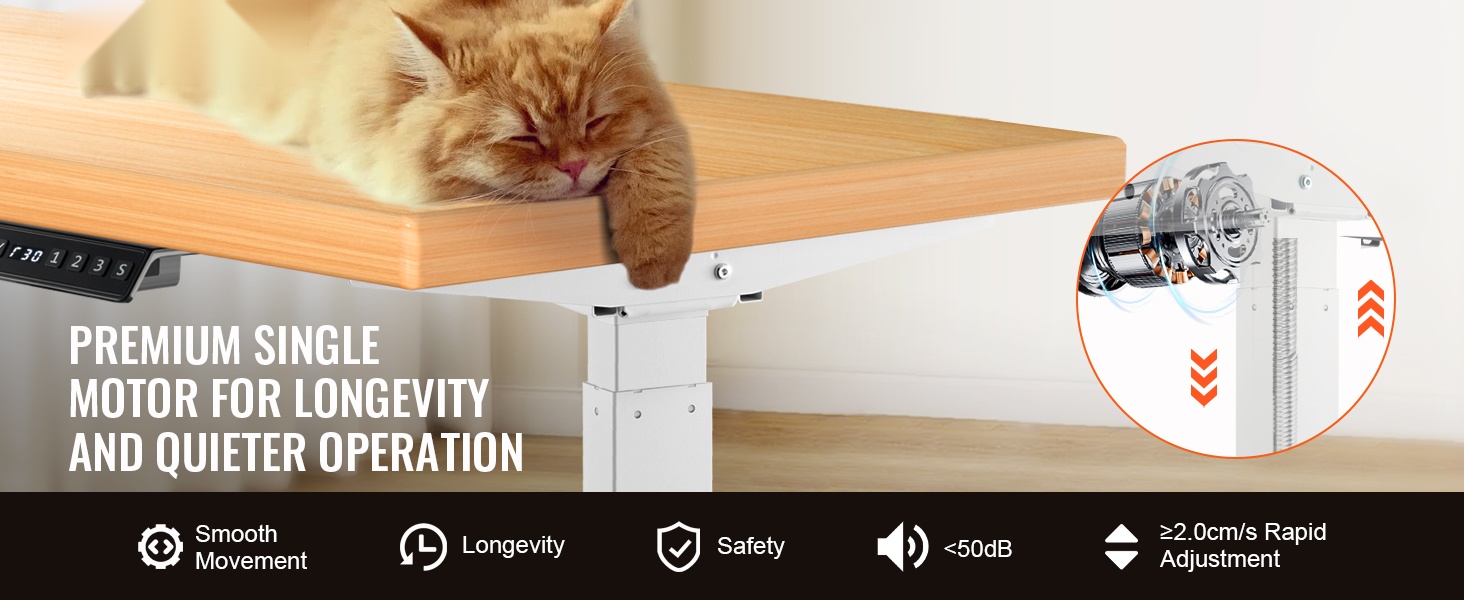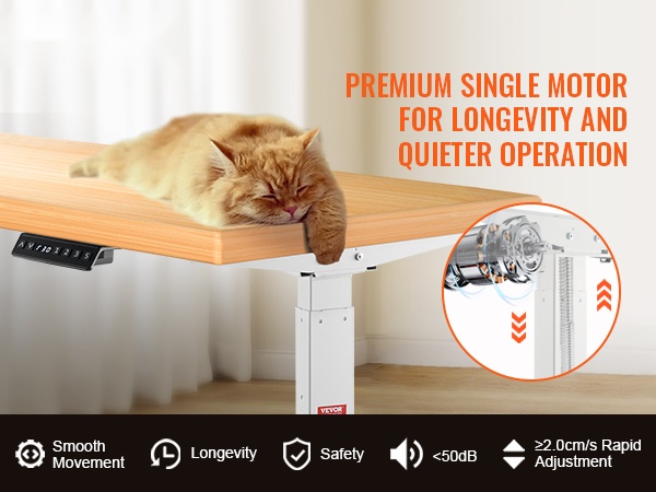 Kaksoismoottoriratkaisu huolehtii tasaisesta ja vakaasta nostosta. Rungon liike on sujuvaa ja melutaso on alle 50 dB, joten korkeuden säätö ei häiritse työntekoa tai ympärillä olevia.