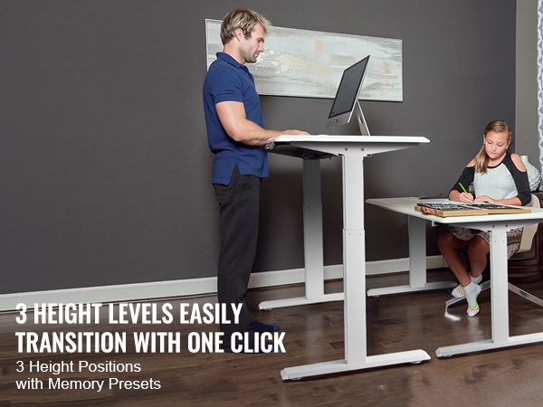 Portaaton korkeudensäätö mahdollistaa siirtymisen istuma- ja seisoma-asentojen välillä yksinkertaisesti yhdellä painikkeella. Kolmen muistipaikan ansiosta voit tallentaa itsellesi sopivat työskentelykorkeudet ja vaihtaa niiden välillä nopeasti.