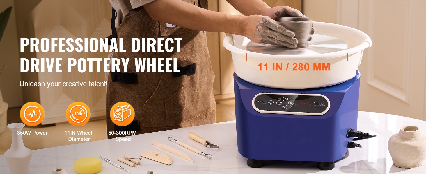 Keraaminen pyörä on varustettu tehokkaalla harjattomalla moottorilla, joka tarjoaa tasaisen suorituskyvyn erilaisissa työolosuhteissa. Säädettävä pyörimisnopeus 60–300 r/min mahdollistaa tarkan hallinnan ja tukee monenlaisia luovia savi- ja keramiikkatöitä.