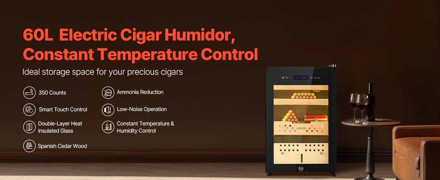 Tämä 70L sähköinen sikarihumidor tarjoaa tilaa jopa 400 sikarille ja pitää ne tasaisessa lämpötilassa ja kosteudessa. Kompressorijäähdytys, tarkka ohjauspaneeli ja alhainen melutaso auttavat säilyttämään sikareiden aromin ja rakenteen pitkäaikaisessa säilytyksessä.