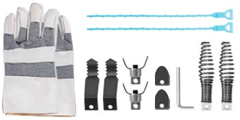 Toimitukseen sisältyy useita erilaisia leikkureita eri tilanteisiin. Nuolileikkuri soveltuu leikkaamiseen ja kaapimiseen, porauspolttimoleikkuri irrottaa löysiä tukoksia, C-leikkuri puhdistaa rasvakerrostumia ja putken seinämiä, ja lapioleikkuri kaapii putken sisäreunoja.