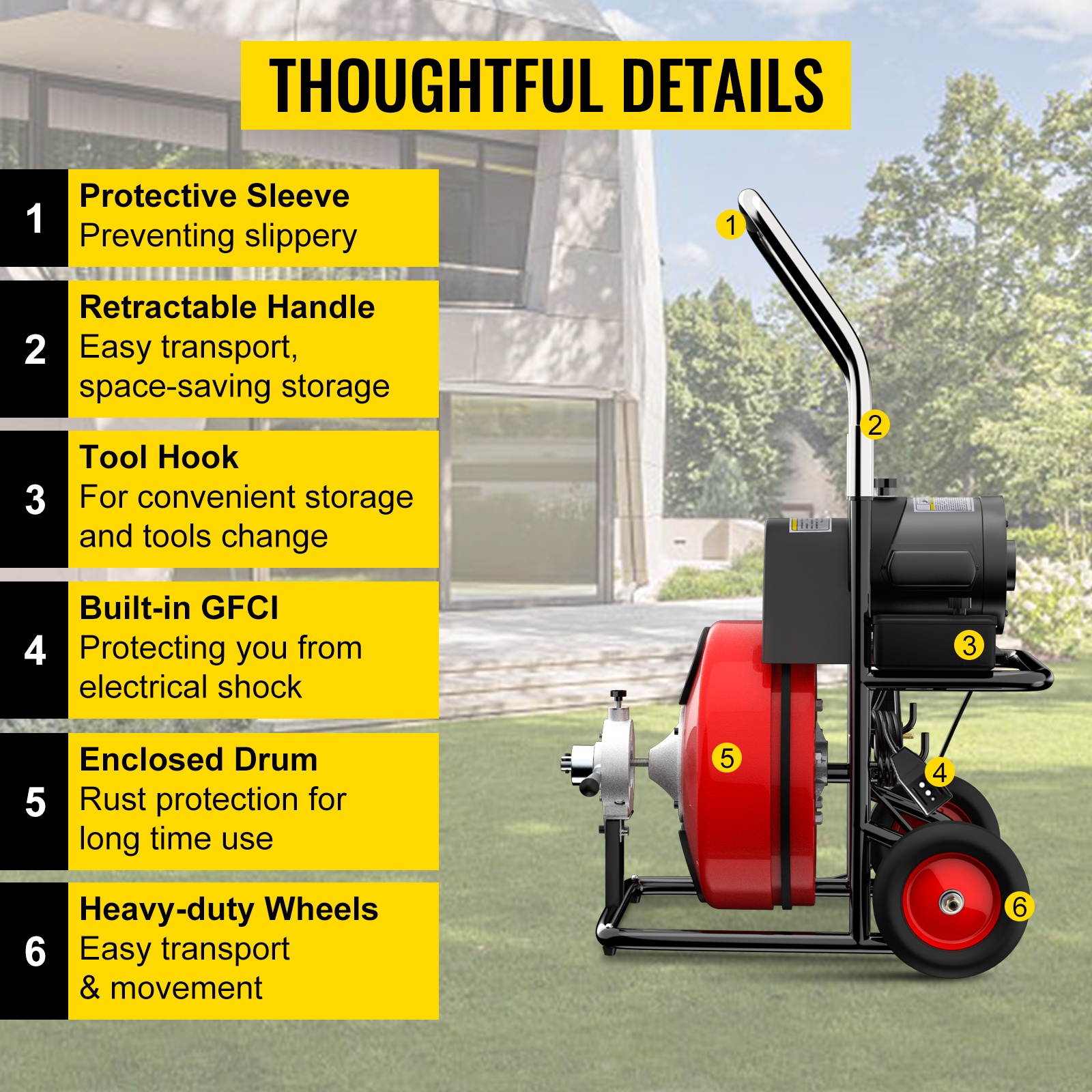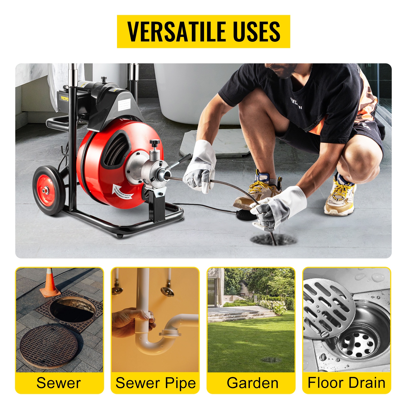 Tämä sähkötoiminen viemärinavauskone on suunniteltu vaativiin putkien ja viemäreiden puhdistustöihin. Tukeva rakenne, sisäytimellä vahvistettu teräskaapeli ja useat vaihdettavat leikkurit auttavat avaamaan tukoksia tehokkaasti niin kotona, taloyhtiöissä kuin muissakin kiinteistöissä. Laite soveltuu erityisesti pääviemäreihin ja viemärilinjoihin, joiden halkaisija on 1"–4" / 25–100 mm.