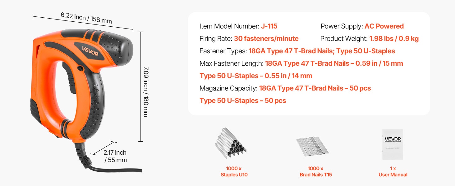 Tämä 2-in-1 sähköinen naulain yhdistää viimeistelynaulaimen ja niittipyssyn yhteen laitteeseen. Se soveltuu monenlaisiin kiinnitystöihin esimerkiksi puutöissä ja tee se itse -projekteissa.
