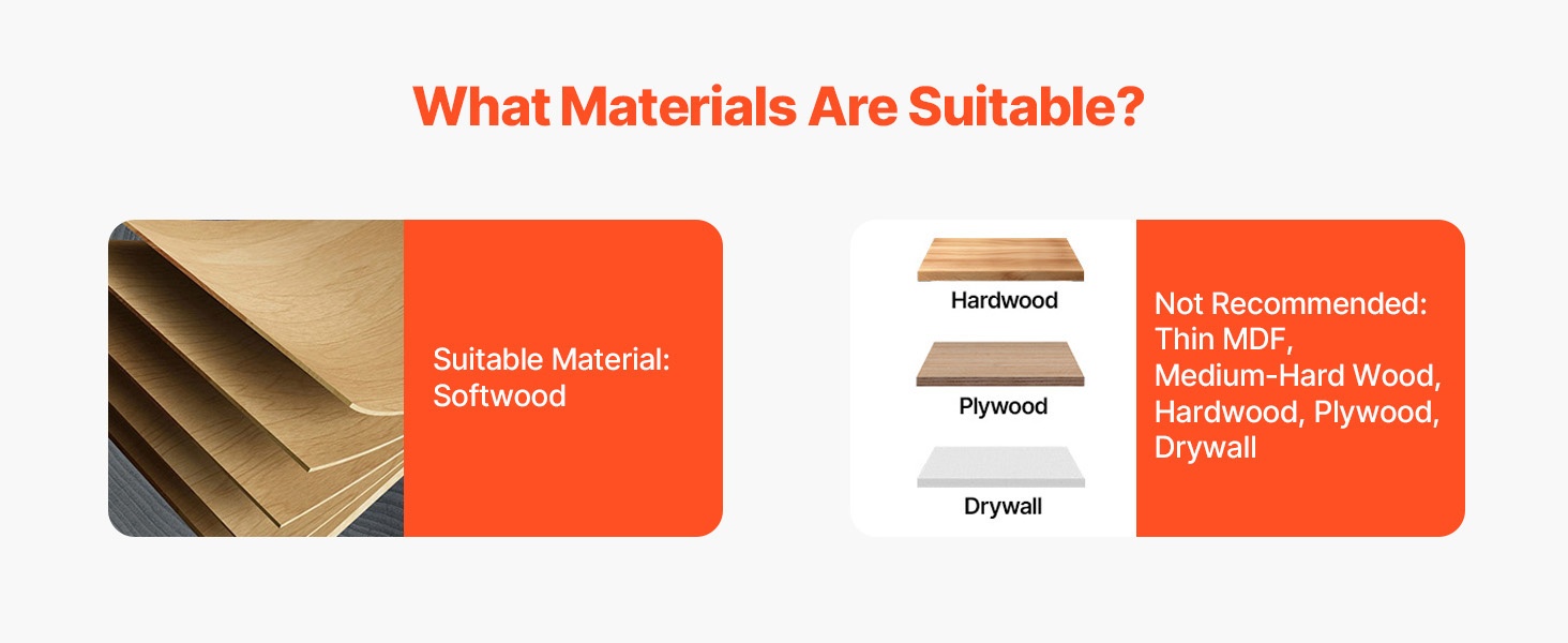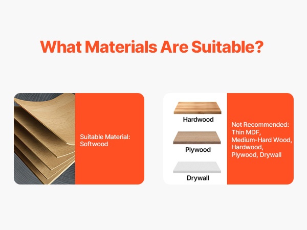 - Sopii pehmeille puulajeille ja ohuelle MDF-levylle