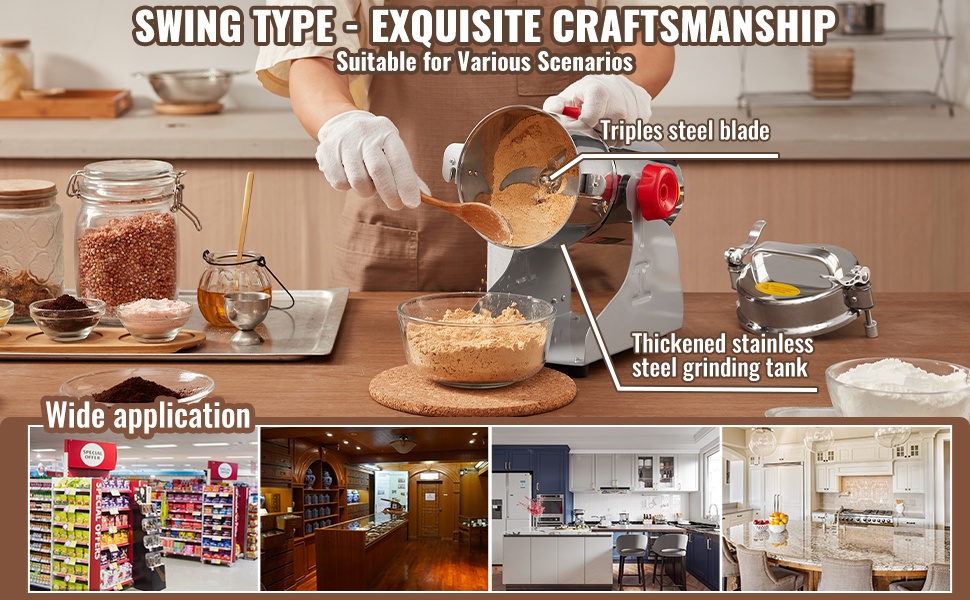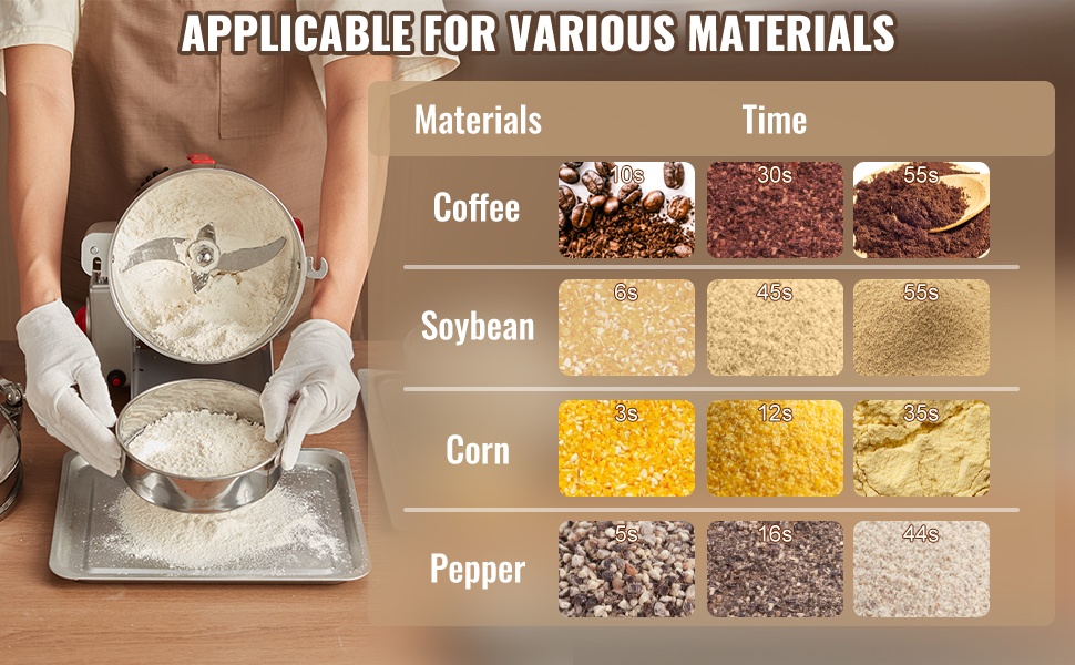 Laite soveltuu sekä elintarvikkeiden että esimerkiksi kokeellisten näytteiden jauhamiseen. Se jauhaa nopeasti viljat, mausteet, kahvipavut, viljahiutaleet, maissin ja pippurin hienoksi ja tasaiseksi jauheeksi.