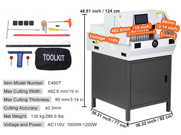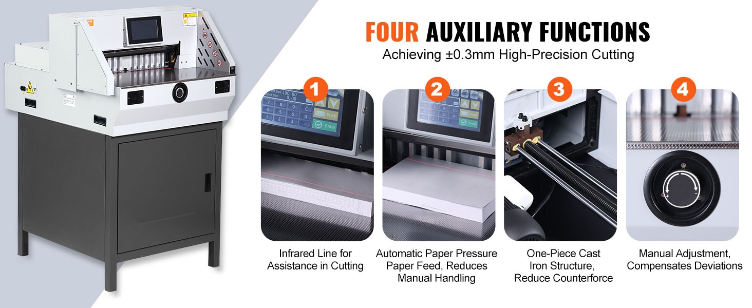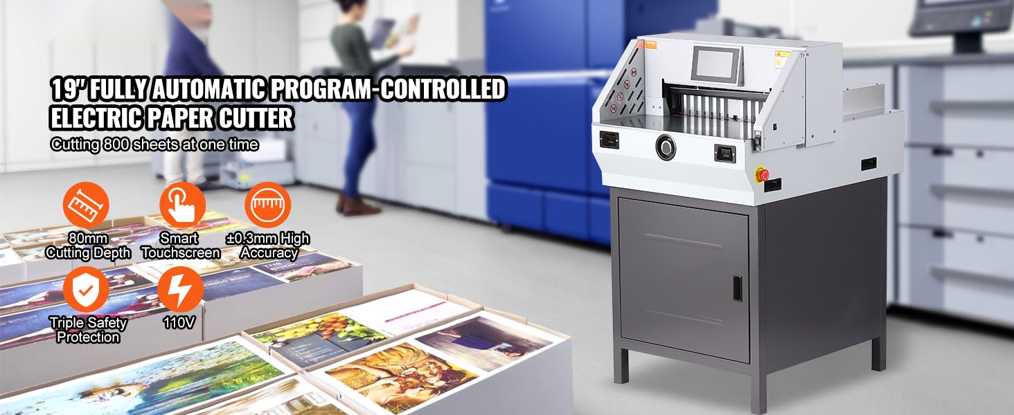 Sähköinen paperileikkuri leikkaa paksuja paperinippuja yhdellä työvaiheella, mikä nopeuttaa työskentelyä esimerkiksi painotaloissa, kopiointipalveluissa ja toimistoissa. Mukana tulevat varaterä ja leikkuutanko helpottavat ylläpitoa ja pidentävät laitteen käyttöikää. Tukeva valurautarunko vähentää leikkausvoimien aiheuttamia värinöitä ja pienentää mittavirheitä.