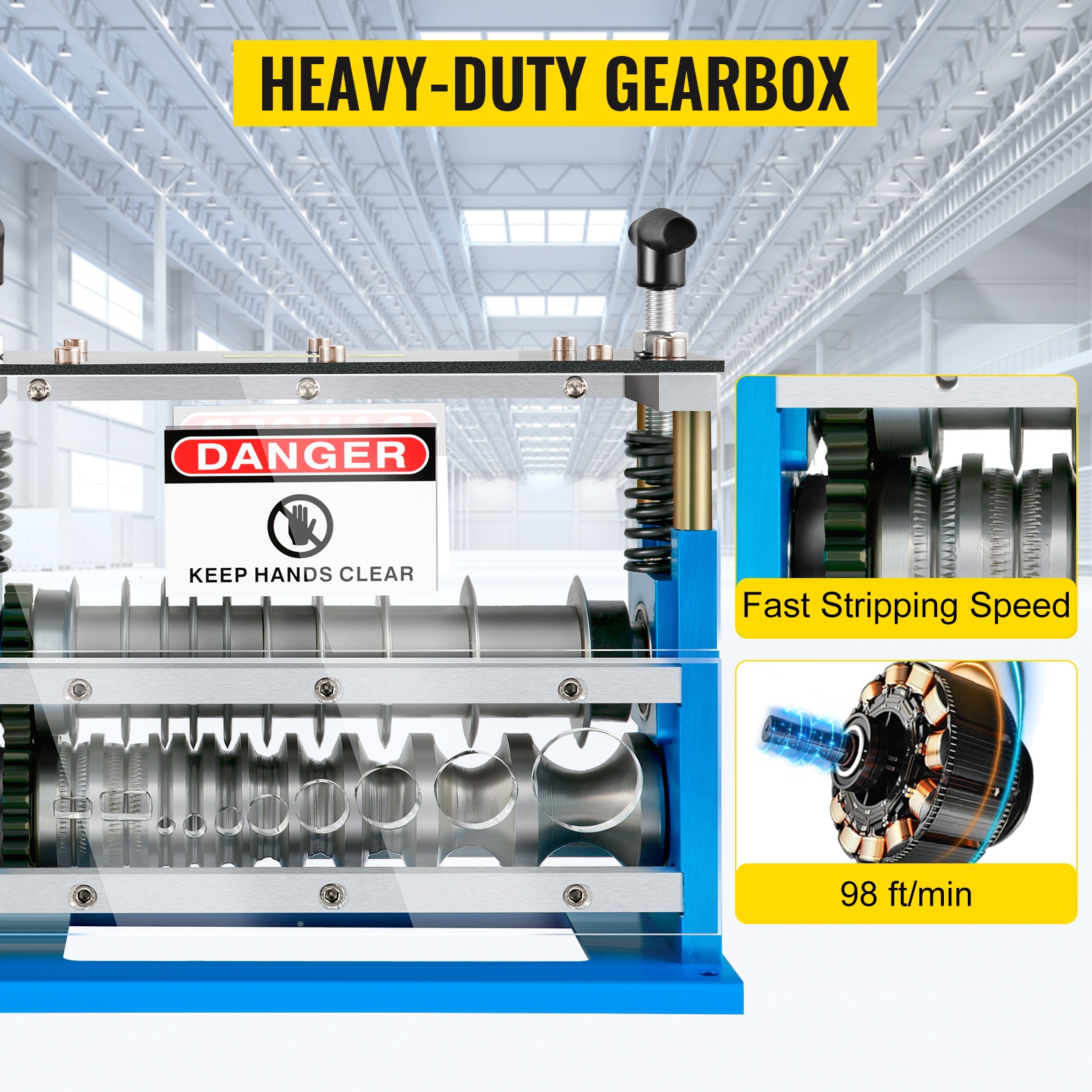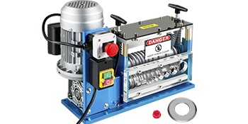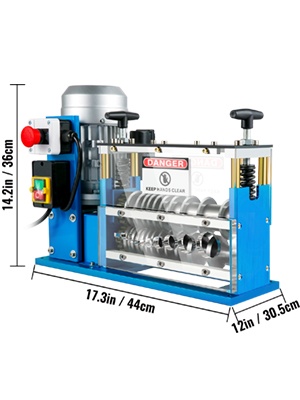 Tämä sähkökäyttöinen johdonkuorintakone helpottaa kuparijohtojen kierrätystä, kun haluat poistaa eristeen nopeasti ja tasalaatuisesti. 11 kanavaa ja 10 terää mahdollistavat useiden erikokoisten johtojen käsittelyn samanaikaisesti. Koneessa on tehokas 370W moottori, suojakotelo ja hätäpysäytyspainike turvallista käyttöä varten.