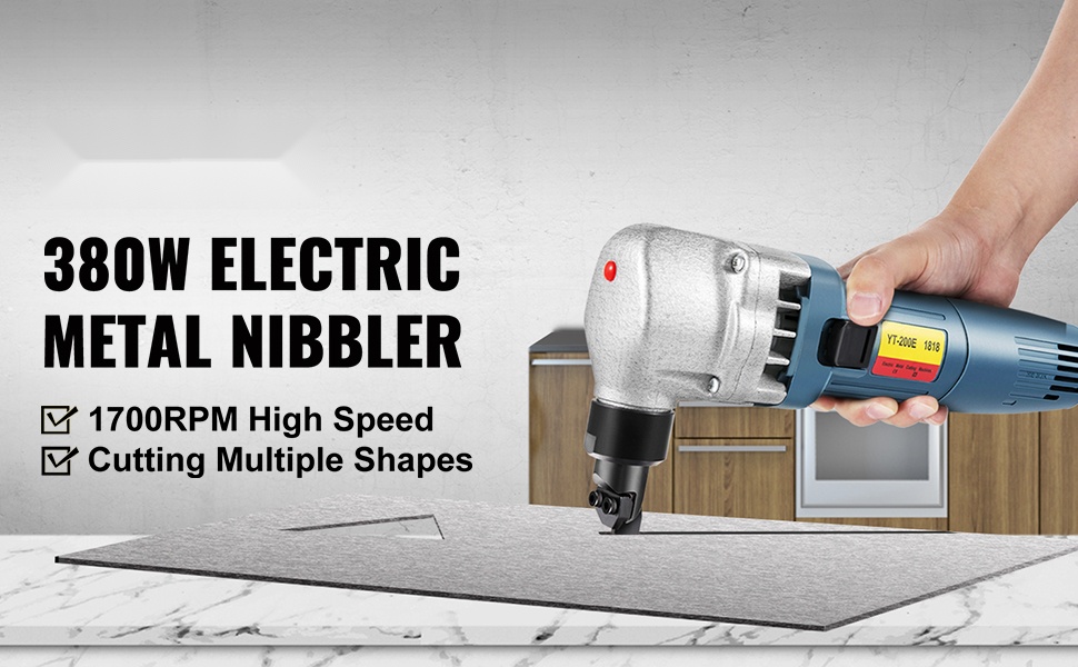 Sähkökäyttöinen peltinibbleri 380W soveltuu teräksen, alumiinin, muovin ja muiden ohutlevymateriaalien tarkkaan ja siistiin leikkaamiseen. 360 asteen säädettävä leikkuupää helpottaa suorien linjojen, kaarien ja ympyröiden leikkausta eri suuntiin. Kapea ja ergonominen runko tekee työkalusta helpon käsitellä myös pidemmissä työrupeamissa.